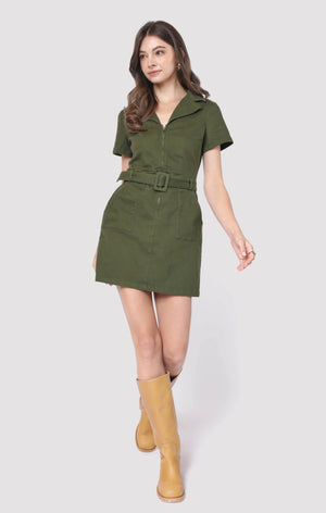 Sadie & Sage Clear Eyes Zip Up Mini Dress w/ Belt