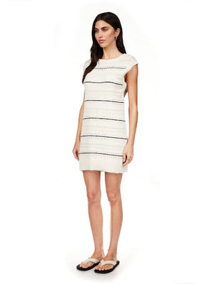 This off white and black crochet dress is adorable and so comfortable. Features a full liner with adjustable straps.
