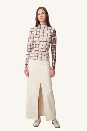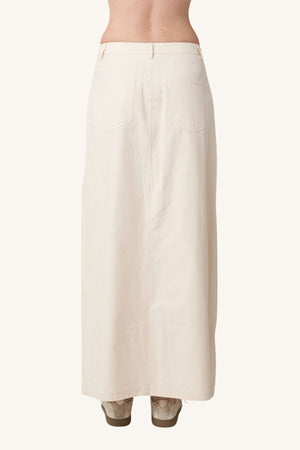 Khaki Midi Skirt features a button closure, side and back pockets, and a front slit. The cool girl skirt for spring, pair with a black tee or a lacy blouse.