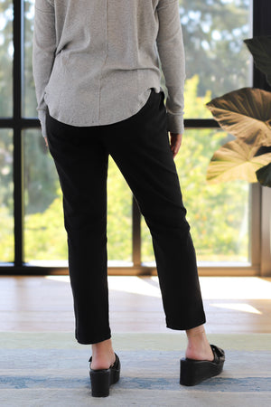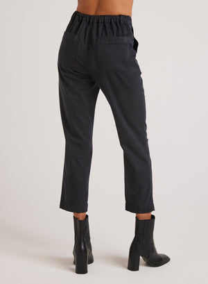 Looking for a new go-to? Introducing the Beau Darted Knee Utility Trouser - the versatile and stylish addition to your wardrobe. These black high-waisted trousers can be dressed up or down, and feature an elastic waistband for ultimate comfort. The unique fold detail on the knee adds a trendy touch to these functional pants.
