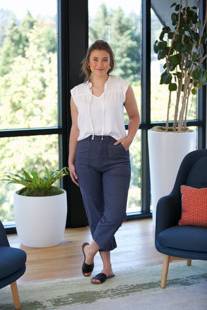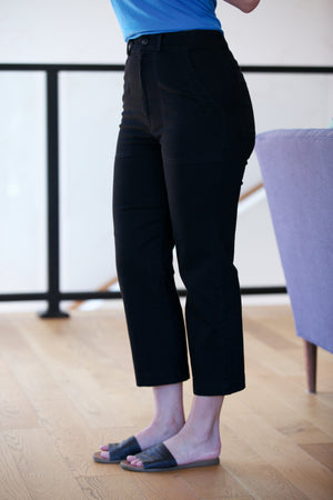 These are just ridiculously cute! Boiler is done in a lightweight denim with innate structure, all the better to show off the clean lines of these cropped flared pants. The rise is extra-high, with a zip/button closure at the waist, and patch pockets in front add to the utilitarian vibe.