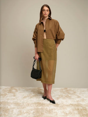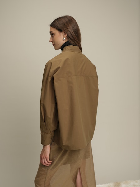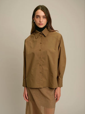 Poplin shirt with point collar and long sleeves with buttoned cuffs. Front buttons for closure