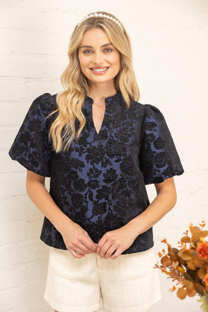 Meet the DEON Erin Top, a refined statement piece that blends lush texture with a playful silhouette for modern wardrobes. This short bubble-sleeve floral velvet jacquard top elevates everyday looks and shines at special occasions alike with its rich fabric and romantic drape.