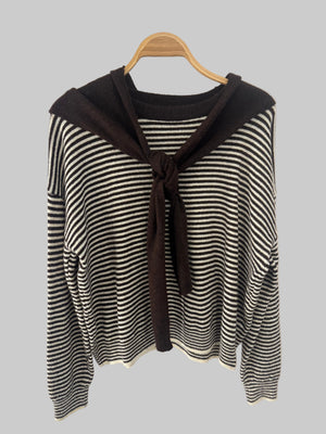 Discover the GOLDEN Trente Sweater with Removable Shawl, a timeless piece inspired by classic nautical style. Its iconic stripes and a removable solid shawl deliver a polished finish, while the relaxed, drop-shoulder silhouette keeps you comfortable and effortlessly chic all day long.