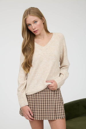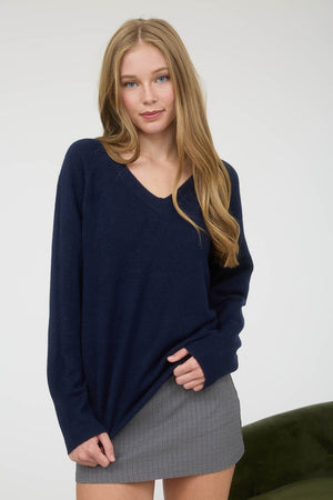 Meet the NYLAND Lobelie V-Neck Long Sleeve Knit Pullover Sweater—a chic, everyday essential that blends comfort with modern flair. The V-neckline flatters the collarbone while the relaxed drop-shoulder silhouette offers a effortlessly stylish look perfect for layering or wearing solo.