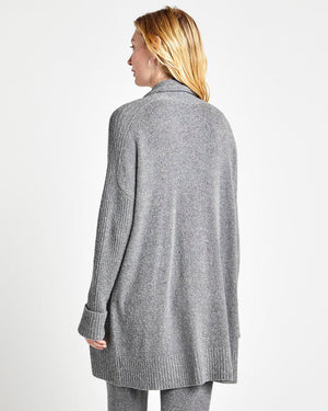 For that wrapped-in-a-blanket feel, reach for the Ophelia Sweater Cardigan. Made from the same fuzzy sweater blend as your couch topper so you'll never want to take it off. A draped open front design with a shawl collar is marked by beautiful ribbing and finished in a tunic length.