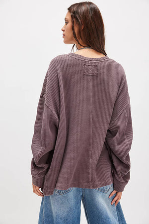 So essential from our We The Free collection, this waffle knit top features soft cotton fabrication, a slouchy, relaxed silhouette, and exaggerated drop shoulders for a go-to comfy staple.