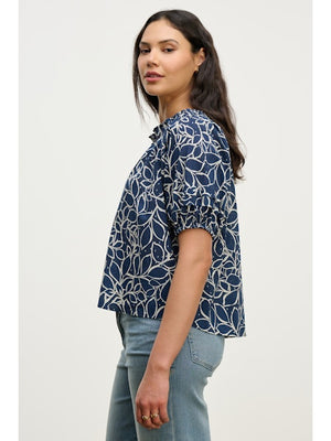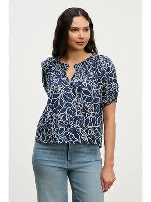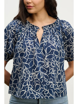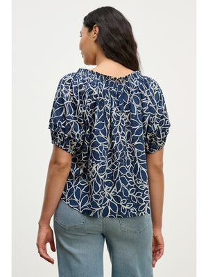 Light and airy in printed cotton voile, this sheer top is designed with a smocked elastic neckline and chest that can be styled on or off the shoulder. Elastic cuffs add subtle volume to the sleeves, while the two-button front keyhole closure gives the option to wear it as a V-neck.