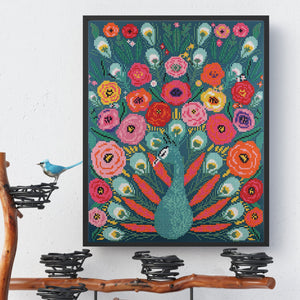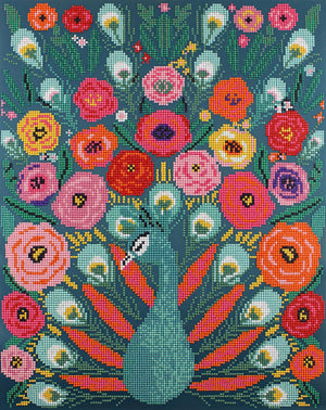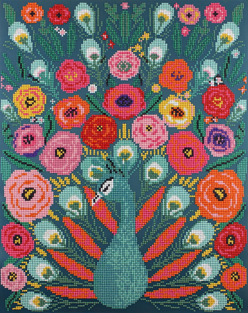 Camelot Dots Diamond Painting Kits feature a mix of classic and unique licensed designs from your favorite brands. Advanced Fabulous Feathers- It’s like paint by numbers but with multi-facet dots. These brightly colored diamond painting kits are sure to please. Features a peacock in full display with flowers mixed in it's feathers. Includes: high quality color printed fabric, pre-sorted gems by shade, craft tray, stylus, soft grip and wax. Measures approximately 15.5"x 19.6".