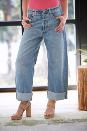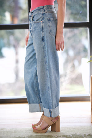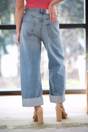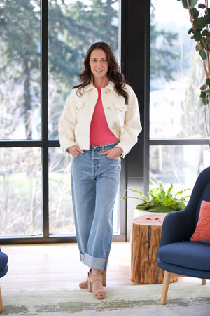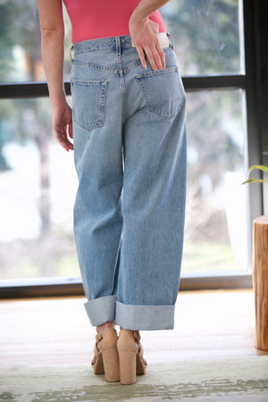 The Ayla is an instant 5-pocket favorite. Designed with a relaxed rise, oversized silhouette, and boldly rolled inseam. Style back to a thin heel or a casual sneaker.
