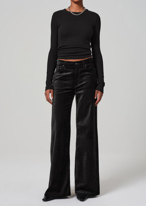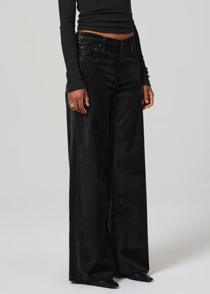 The Lolli features an ultra-flattering mid-rise waist that sits higher up on the hip with an easy, relaxed wide leg. The 32" inseam lengthen the leg for a look that can be easily dressed up or down.