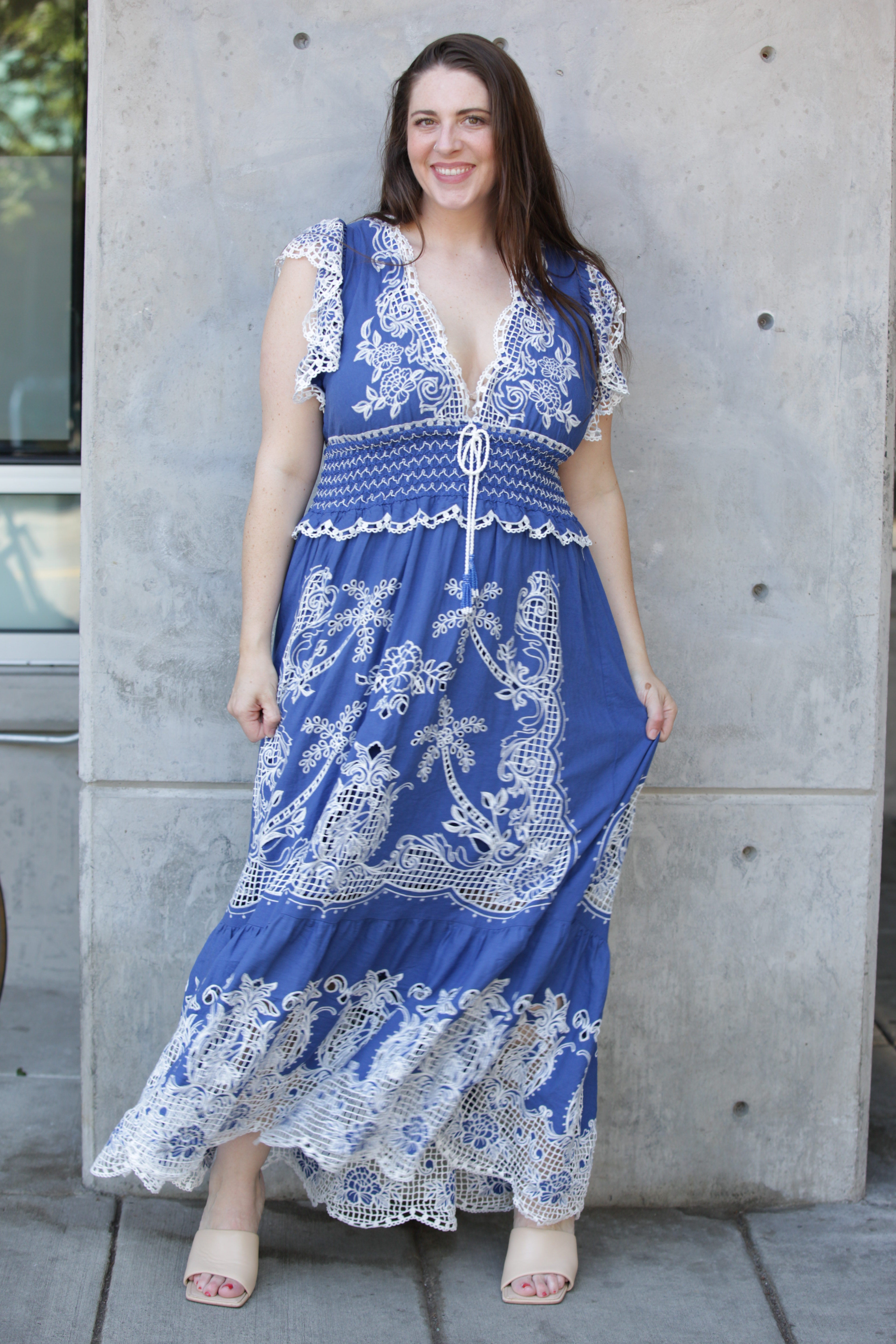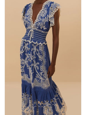 Farm Rio Romantic Richelieu Blue Maxi Dress