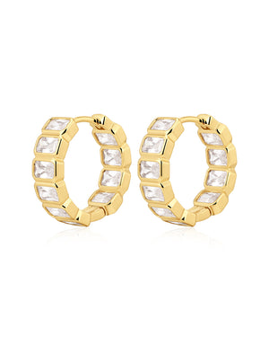 Pair of hinged hoops with bezel set Emerald CZ stones