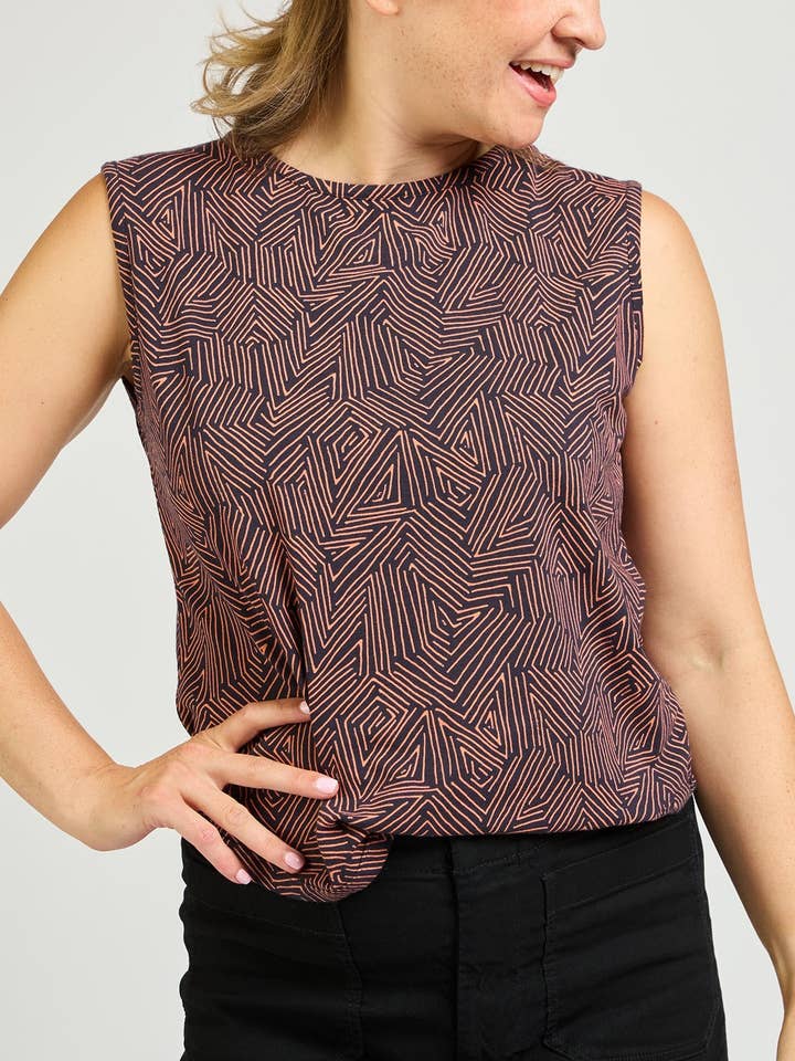With a relaxed and easy fit, this muscle tee can be worn tucked, tied, or untucked.