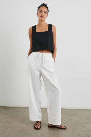The Akira is a fully-lined heavy linen crop with bust darts to ensure a tapered fit and features a flattering square-neckline. For the ultimate all-white everything outfit, pair with the Carly skirt.