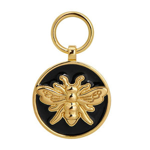 The Honey Bee Pendant Necklace features a golden honeybee accentuated with black enamel on a paperclip chain. Available in 14/20 Gold-Filled or 18K Plated, and hangs on a 17" chain. **Note: The plated chain has slightly smaller links than the gold-filled chain